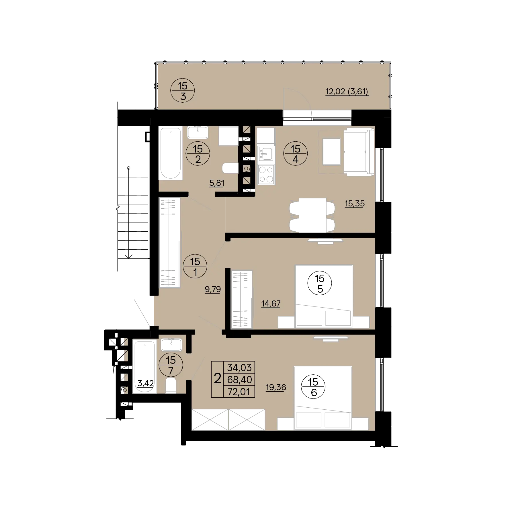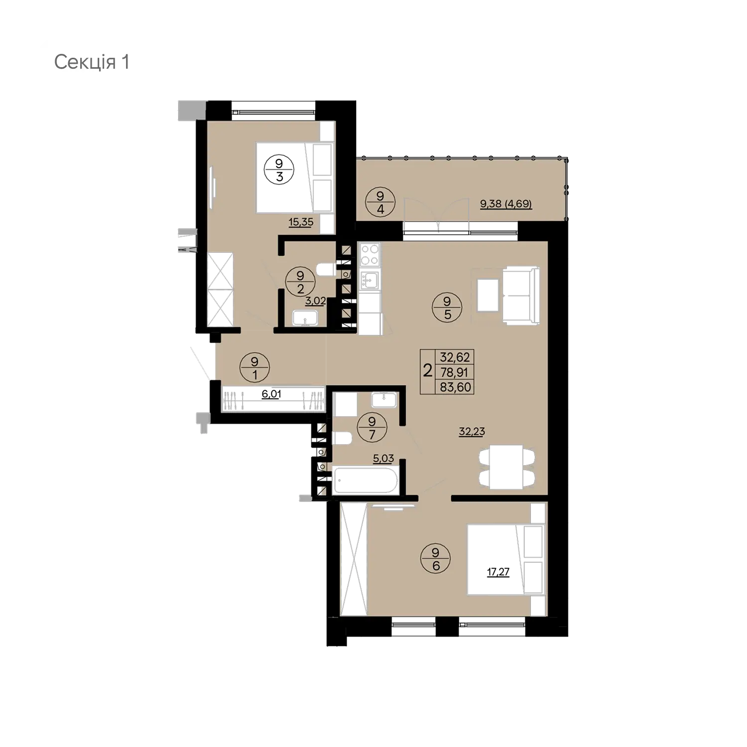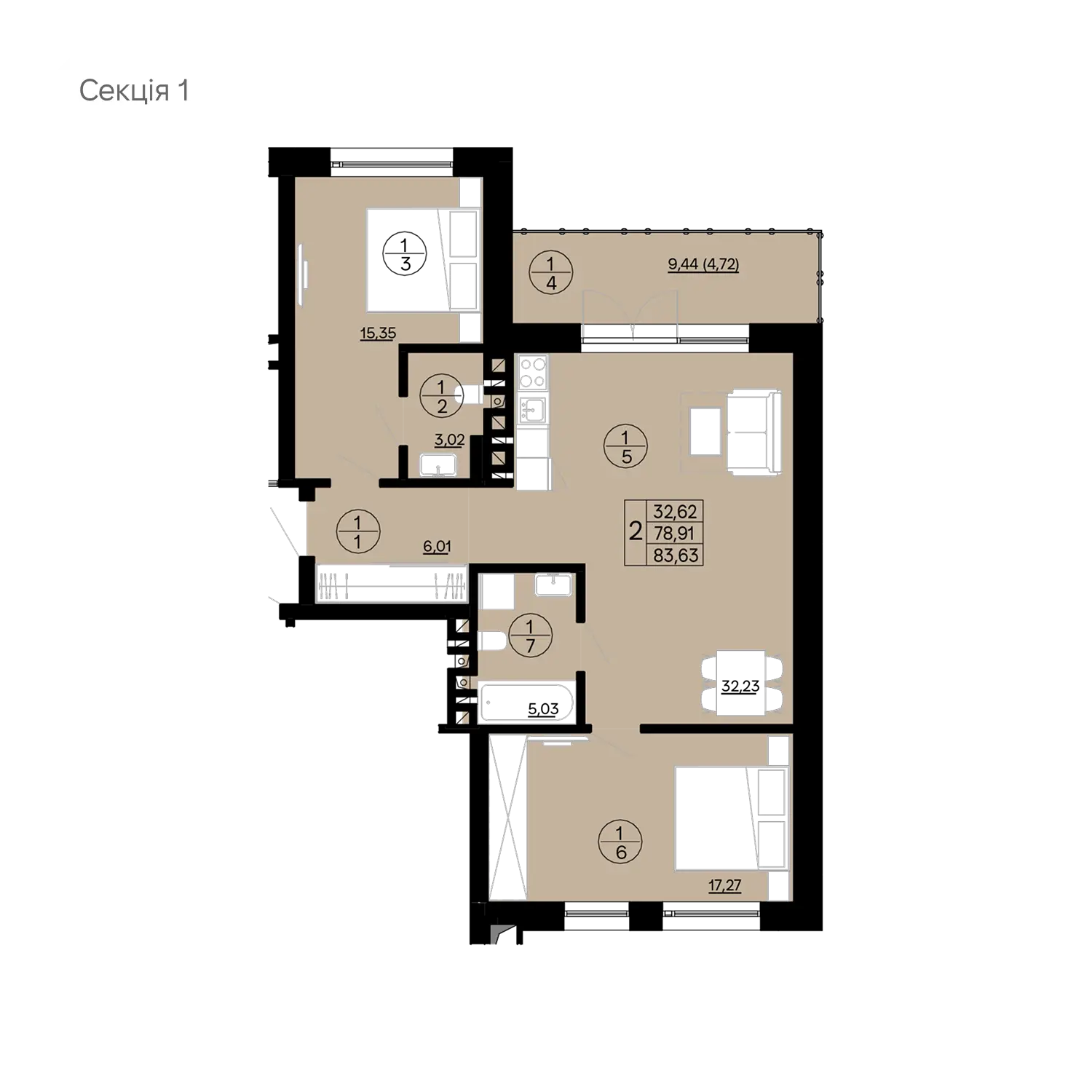 Балкони, лоджії, тераси: відкритого типу, з огородженням